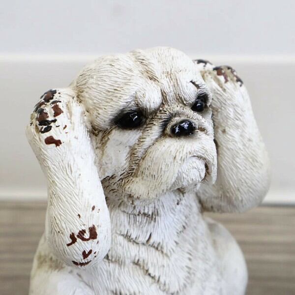 3個セットの「見ざる、言わざる、聞かざる」のモノマネをしたかわいい犬のオブジェ(置物)です