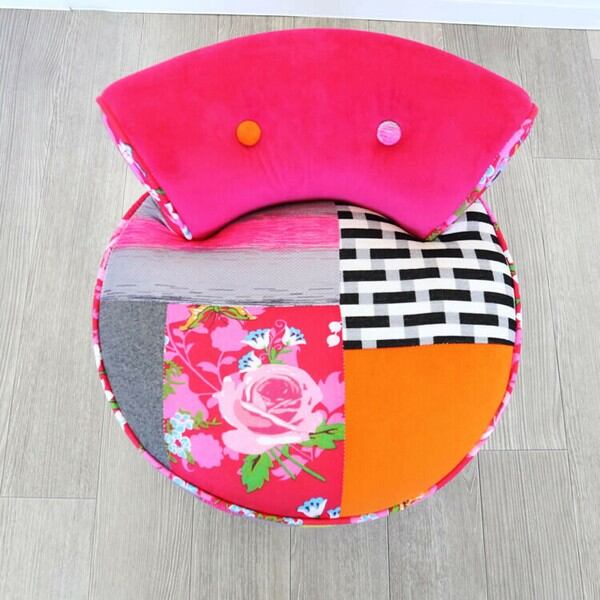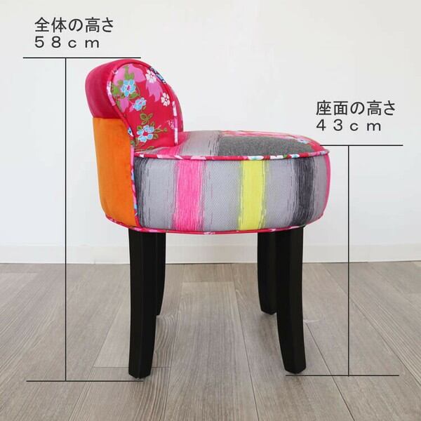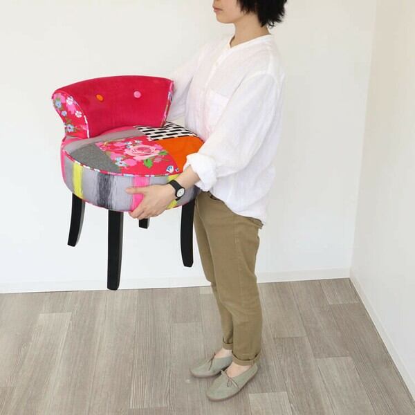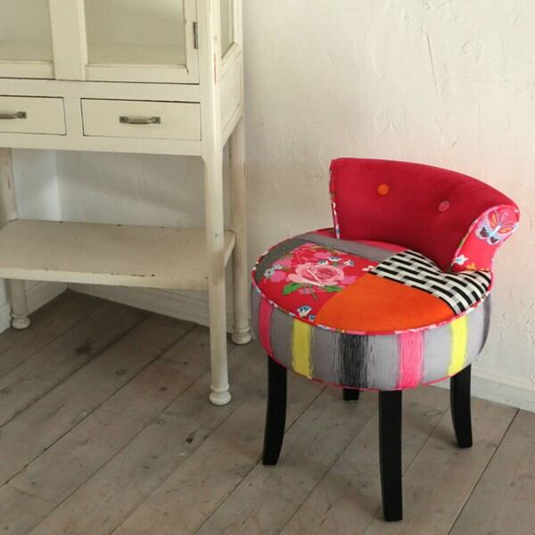 ファブリックのカラフルパッチワークがかわいいデザインカラフルチェアー(椅子)です