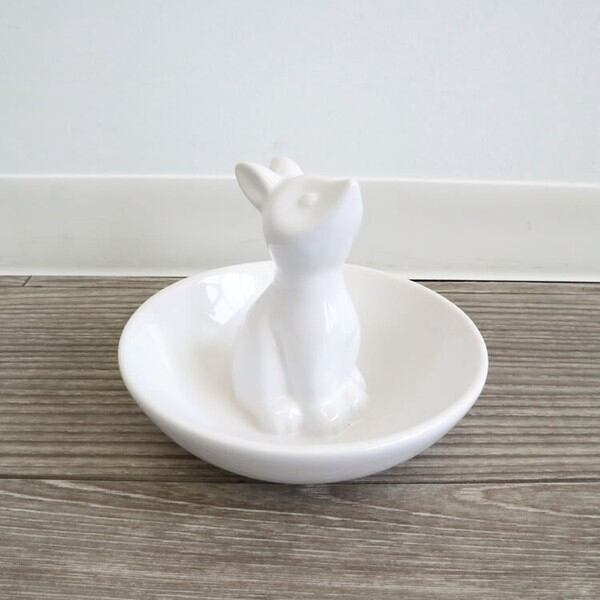 販促品、ノベルティーにも 陶器トレイ 小物入れ キツネ / 家具・インテリア インテリア雑貨 収納小物
