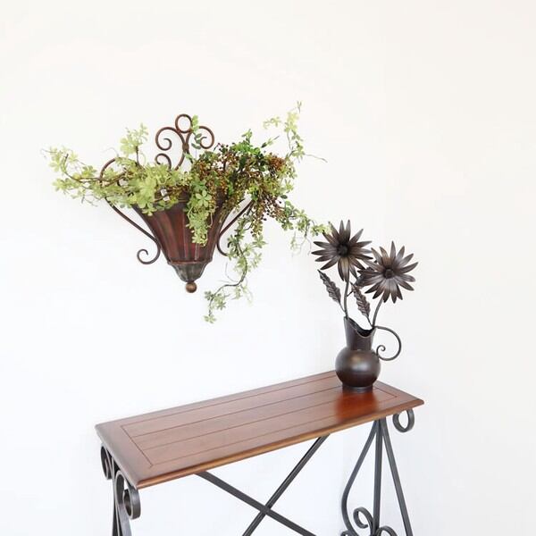 アンティーク調のアイアンウォールプランター(壁掛け)です