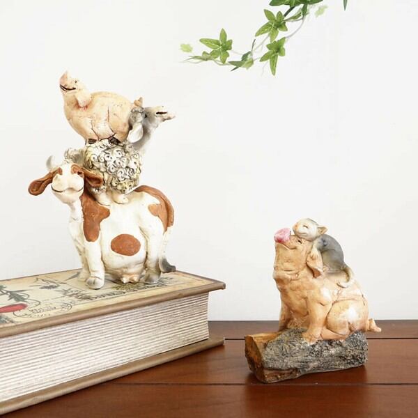 ブタの上にネコが乗ったとてもかわいい置物(オブジェ)です♪