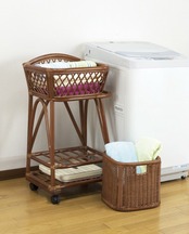 二段式で着替えと脱衣を分けられる天然籐ランドリー
