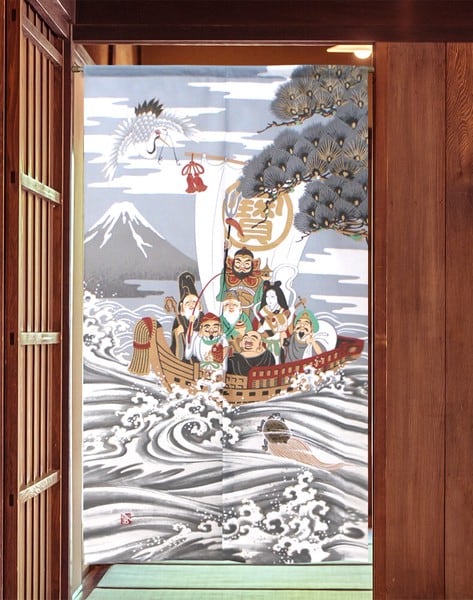 のれん 目隠し 85X150cm「鶴亀七福神(レース)」 日本製 和風 / 家具・インテリア ファブリック・敷物