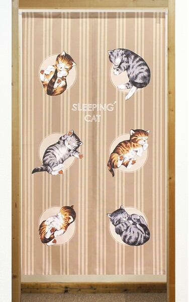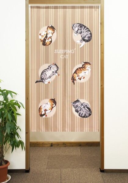 のれん 受注生産 目隠し 「SLEEPING_CAT」 日本製 洋風 猫 / 家具・インテリア ファブリック・敷物