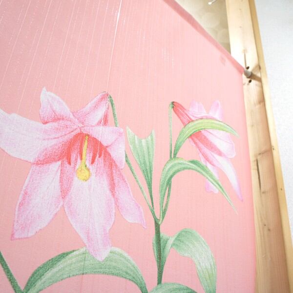 のれん 目隠し 85X150cm 荻荘聖子「オトメユリ」 日本製 当日発送 百合 色鉛筆画 / 家具・インテリア ファブリック・敷物
