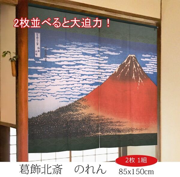 のれん 受注生産 目隠し 「葛飾北斎_凱風快晴 2枚組」85x150cm 日本製 赤富士 和風 / 家具・インテリア ファブリック・敷物