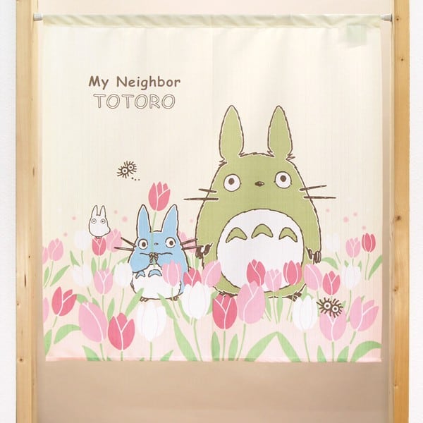 のれん 目隠し 85X90cm となりのトトロ「四季と植物 チューリップとトトロ」ジブリ 日本製 / 家具・インテリア ファブリック・敷物