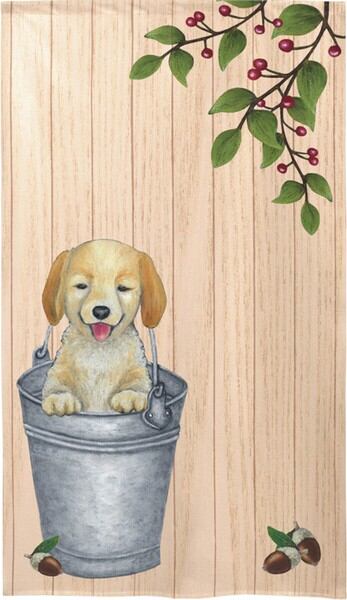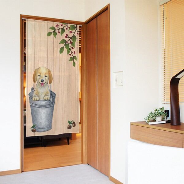 のれん 受注生産 目隠し 「バケツにゴールデンレトリバー」85x150cm 日本製 洋柄 / 家具・インテリア ファブリック・敷物