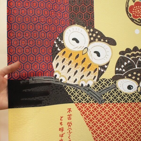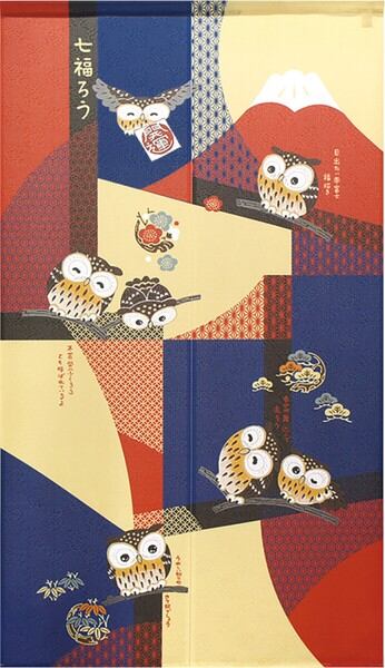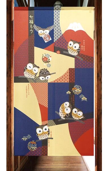 福の神として進行されている七福神や、「福来郎」「不苦労」などの語呂合わせから幸せを運ぶと言われているフクロウなど日本で古くから親しまれている縁起物をあしらったのれんシリーズです