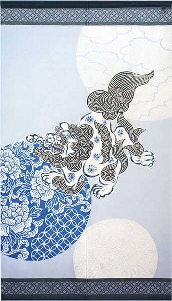 のれん 受注生産 目隠し 「狛犬」 日本製 和風 縁起物 シーサー / 家具・インテリア ファブリック・敷物