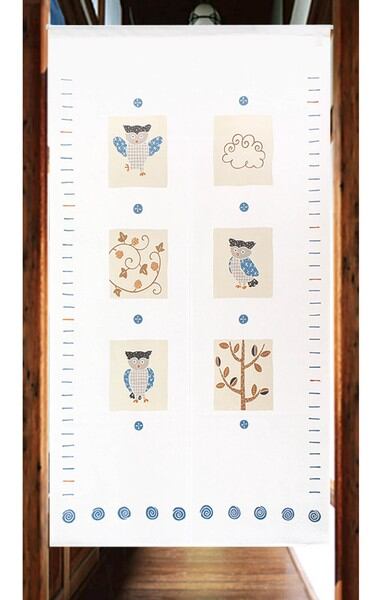 のれん 受注生産 目隠し 「パッチワーク風フクロウ」 日本製 和風 縁起物 フクロウ / 家具・インテリア ファブリック・敷物