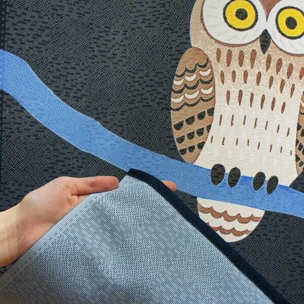 のれん 受注生産 目隠し 「フクロウ2匹と満月」 日本製 和風 縁起物 フクロウ / 家具・インテリア ファブリック・敷物