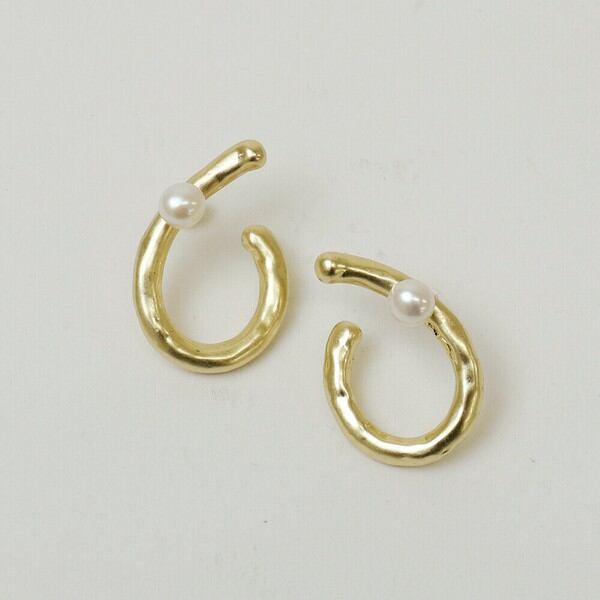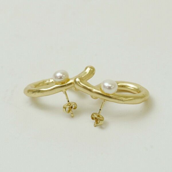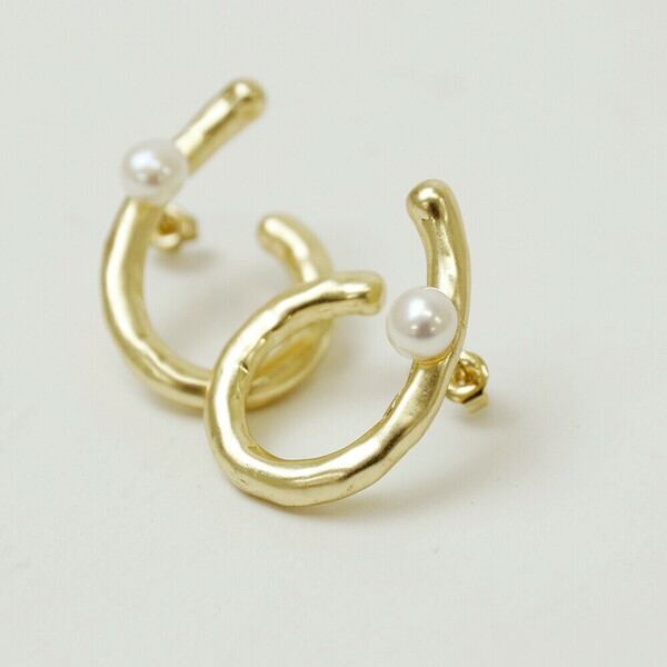 僅かな歪みや鈍いゴールドの輝きと、淡水パールが持つ独特な輝きが女性らしさを格上げしてくれるピアス