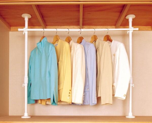 上下に突っ張るので、横幅に関係なく押し入れの半分だけをハンガーにして使用することもできます