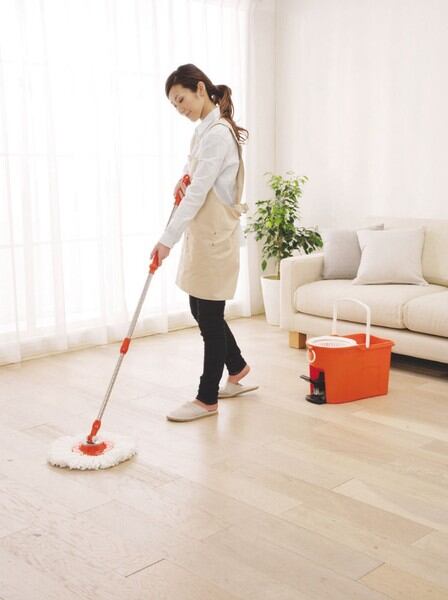 マイクロファイバーモップで、水拭きでから拭きでも、しっかり汚れをキャッチします
