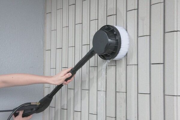 内側のブラシが水流で自動回転し、車や浴室・外壁・サッシなどの落ちにくい汚れを落とします