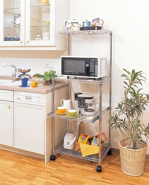 置いたものの落下防止の囲い付きトレー形状のメタルラック専用のスライドトレーです