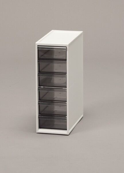 スリムタイプの6個の引出しで分類や区分けに便利です