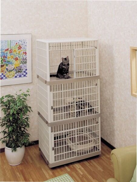 サビない、手入れが簡単、軽い等オールプラスチック製の良さを活かしたネコに最適な3段タイプのケージです
