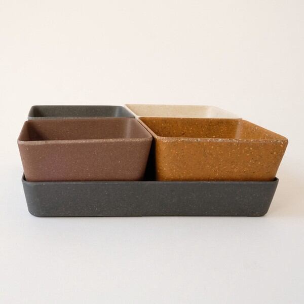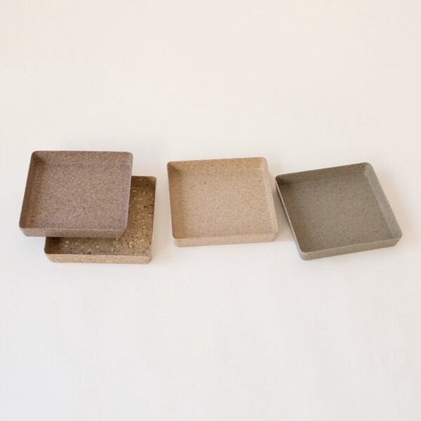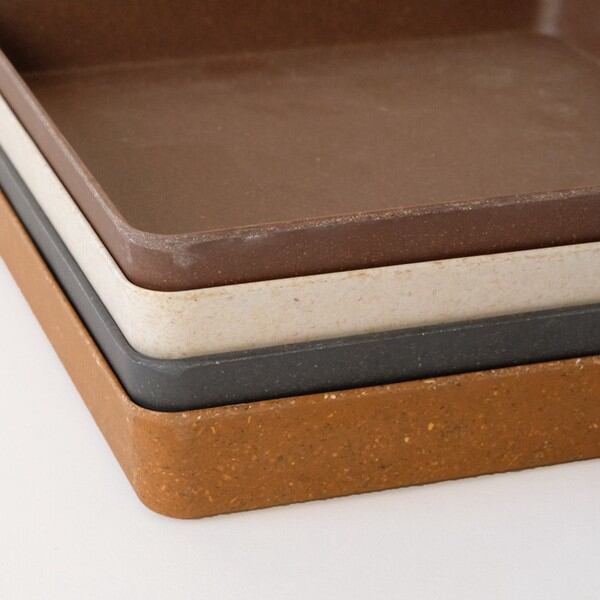 どちらも土に還りやすいエコ素材を使用したトレーです