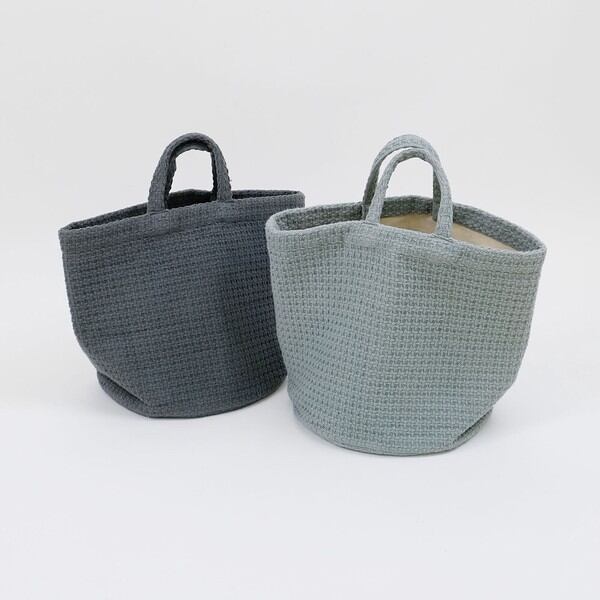 表情のあるワッフル織りを施したコットン生地を使ったバスケット