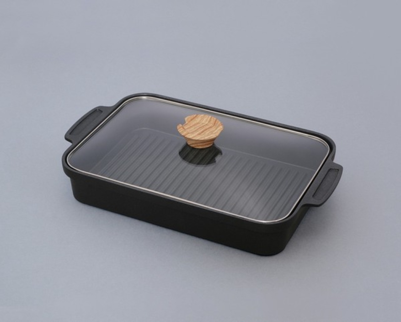■素材・成分:【グリルパン】表面加工/内側・外側:フッ素樹脂塗膜加工、材質/本体:アルミニウム合金(底の厚さ9mm)、はり底:ステンレス鋼(クロム16%)(厚さ0.5mm)【ガラスふた】金属部:ステンレス鋼(クロム16%)、樹脂部:フェノール樹脂、ガラス:全面物理強化ガラス【シリコン取っ手】シリコン(耐熱温度220℃)