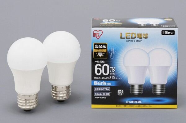 アイリスオーヤマ 大口受付中! LED電球 E26 2 P広配光タイプ 昼白色 60形相当(810lm) / 電化製品 生活家電 ライト・照明 電球・蛍光灯