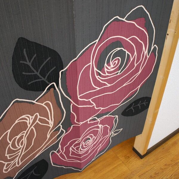のれん 目隠し 85X170cm「ラインローズ」 日本製 ロングサイズ バラ / 家具・インテリア ファブリック・敷物