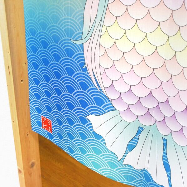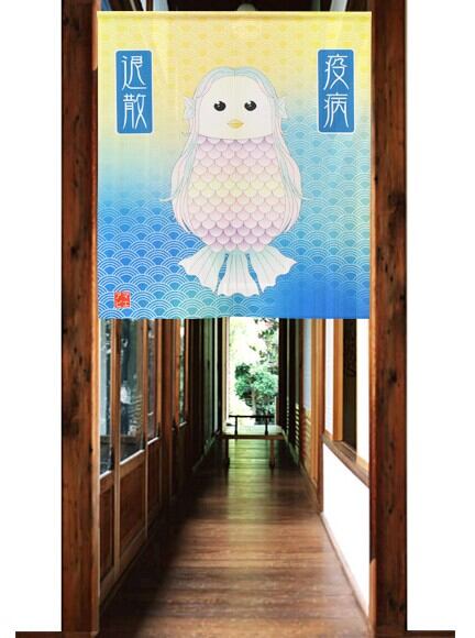 のれん 受注生産 目隠し 「アマビエ_レインボー」85x90cm 日本製 妖怪 / 家具・インテリア ファブリック・敷物