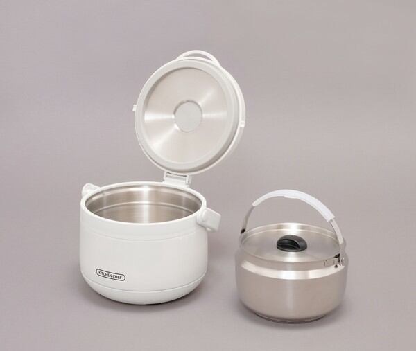 ●材料を入れた調理鍋を火にかけ沸騰した後、調理鍋ごと保温容器に入れるだけで余熱調理ができる保温調理鍋です