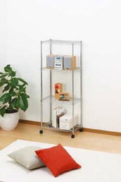 ■素材・成分:棚板・ポール:スチール(クロムメッキ仕上げ)、キャスター:ナイロン樹脂、固定部品:ABS樹脂