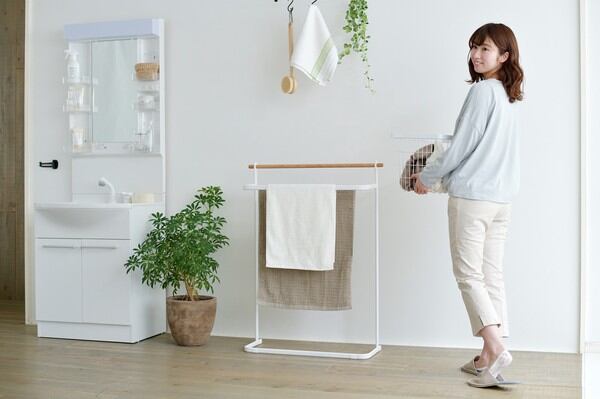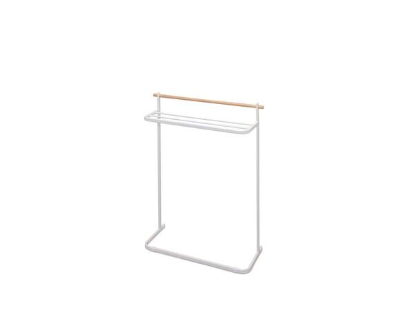 ●マットな質感のスチールパイプと温かみのある天然木の組み合わせで、お部屋に置いても圧迫感のないシンプルなデザインのタオルハンガーです
