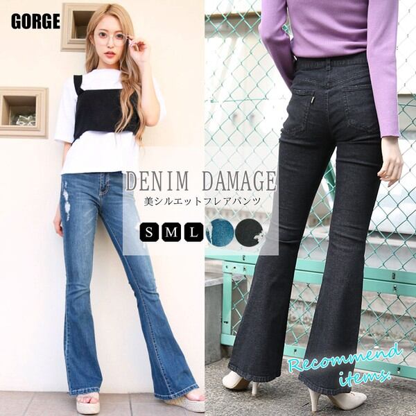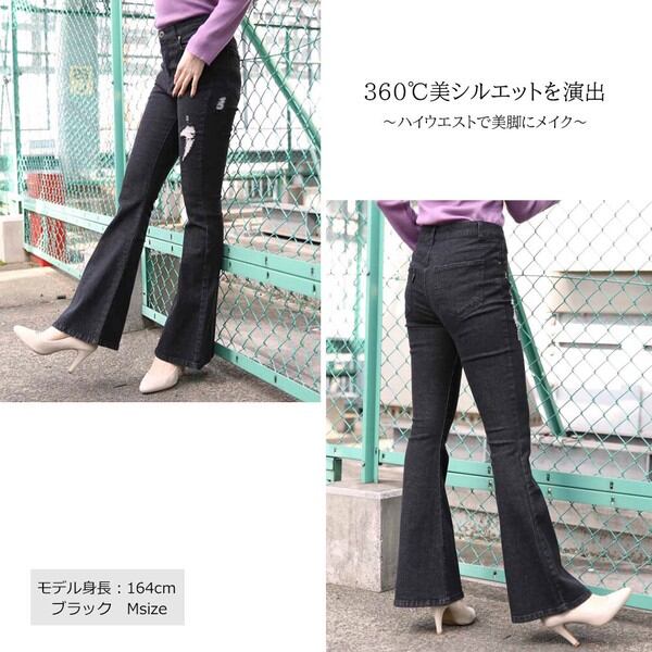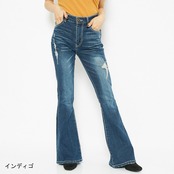 デニムダメージフレアパンツ / ファッション レディースアパレル ボトムス デニムパンツ フルレングスパンツ