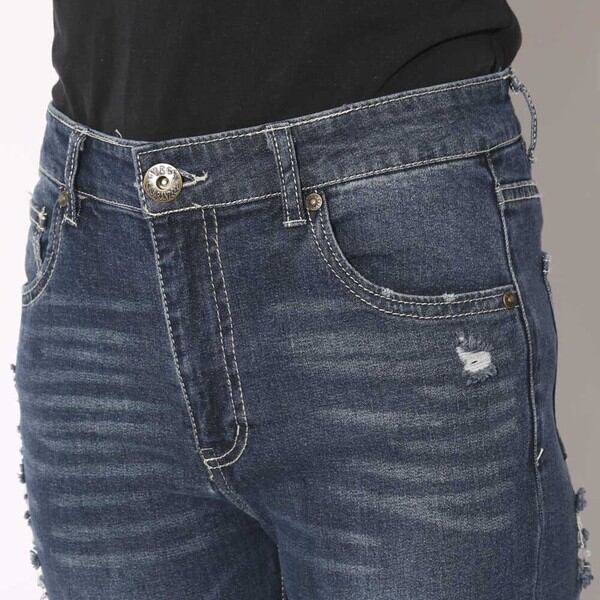 デニムダメージフレアパンツ/カット/サーマル/レディース/加工/ビンテージ/スキニー/6400015