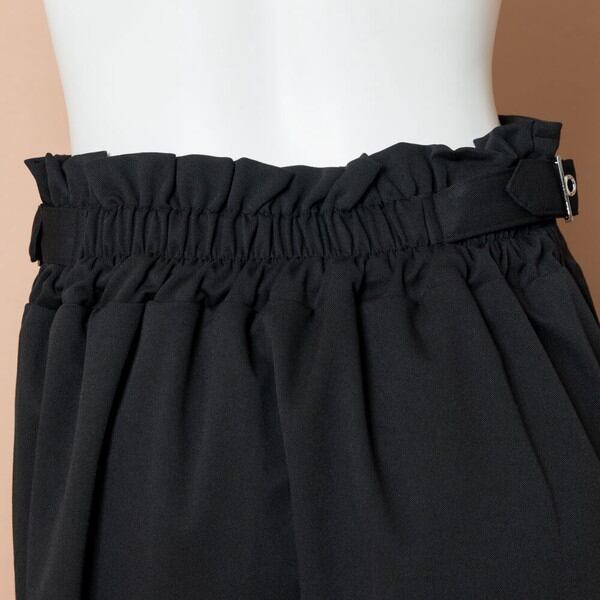サイドのベルトデザインのアクセントを活かしたウエストインのスタイリングがおすすめです◎裾フロントにスリット入りで抜け感のある仕上がりに♪ウエスト後部はゴム入りで締め付け感が少なく楽に履いて頂けます☆