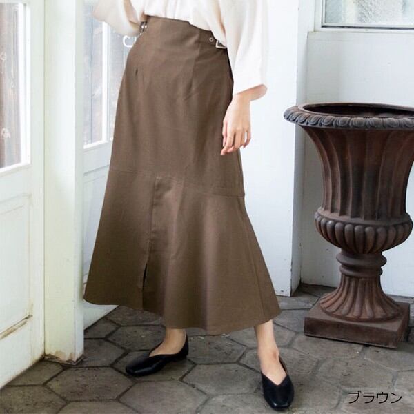 前スリット スリット ツイル マーメード スカート ロング ベルト 晩夏 秋 0320772