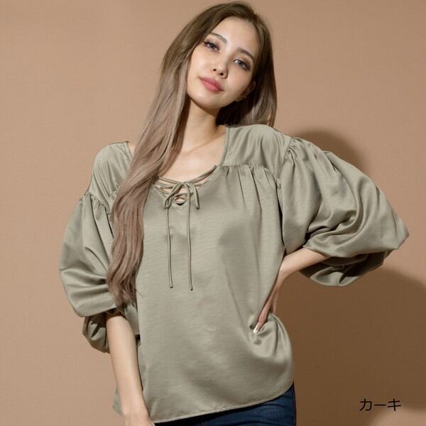 ブラウス/サテン/ヴィンテージサテン/シンプル/無地/スピンドル/2way/秋/冬/0340756