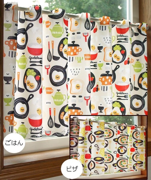 受注生産カフェカーテン サンリオ「ぐでたま キッチングッズ」120x45cm 日本製 / 家具・インテリア ファブリック・敷物 カーテン・ブラインド