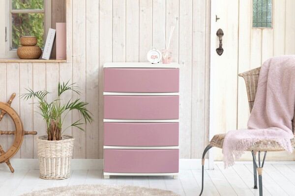●引き出し幅が53cmで組立式のカラーワイドチェスト