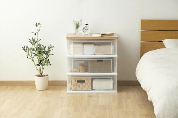 ■素材・成分:天板:プリント紙化粧パーティクルボード、フレーム・引き出し:ポリプロピレン