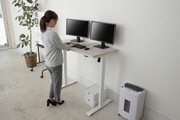 ●ボタンひとつで思い通りの高さに調節可能な、電動昇降テーブルです