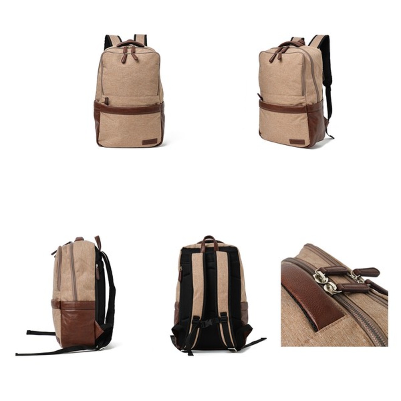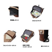 本体素材は杢調ポリエステル/はっ水加工Xシボ合皮の落ち着いた雰囲気です
