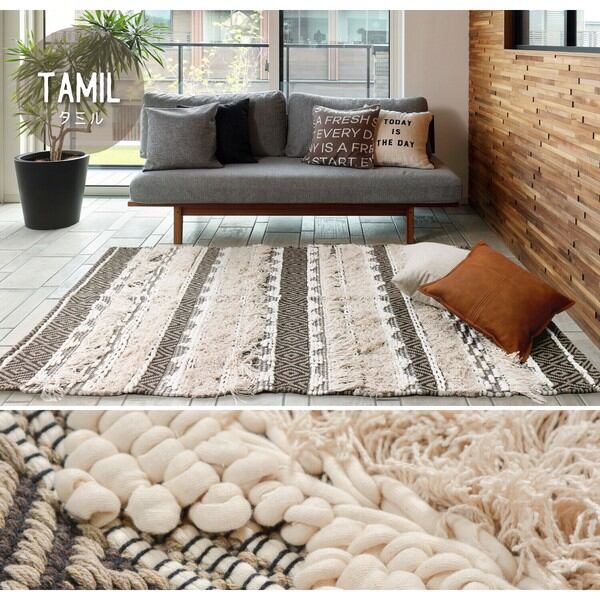 ラグ コットン100% 手織り 「ビアヘロ_ベンガ」 約130×190cm / 家具・インテリア ファブリック・敷物 ラグ・マット