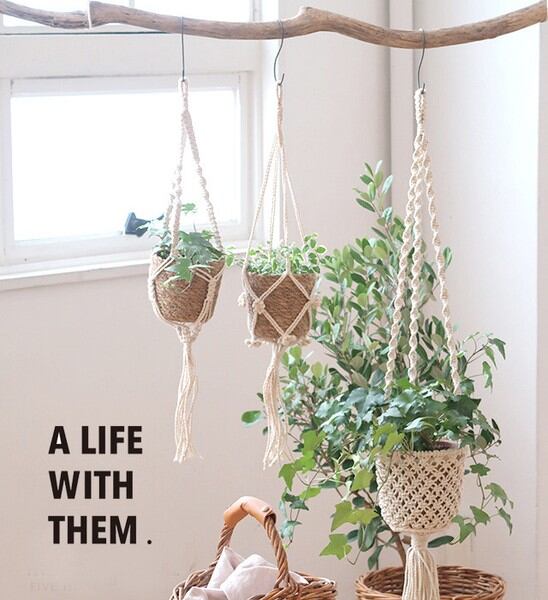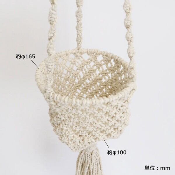 コットンロープをマクラメ編で編み上げたプラントハンガー