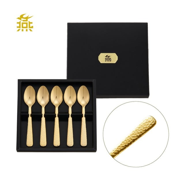 日本製 新潟製 燕匠一 鎚目スプーン5本セット(金仕上) ( インバウンド お土産 ) / 生活雑貨 食器・キッチン カトラリー