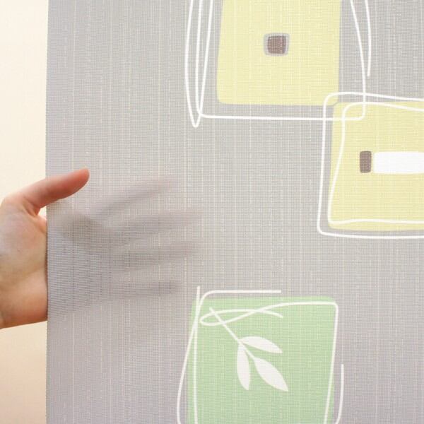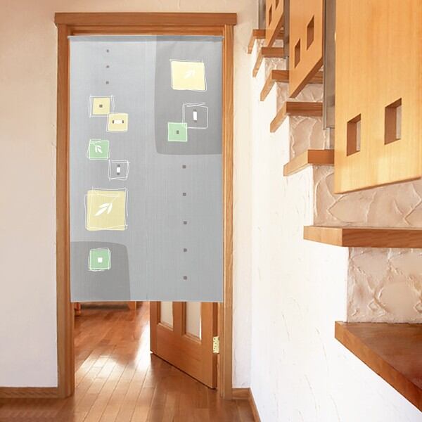 のれん 受注生産 目隠し 「四角と葉っぱ」85x150cm 日本製 洋風 洋柄 / 家具・インテリア ファブリック・敷物