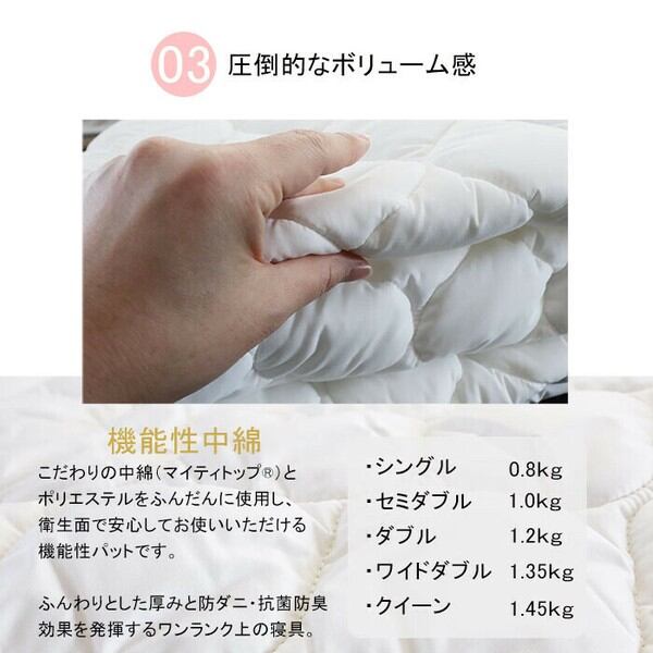 洗える日本製ポリエステルベッドパッドマイティトップの高機能パットです