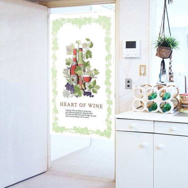 のれん 受注生産 目隠し 「HEART_OF_WINE」85x150cm 日本製 洋風 洋柄 / 家具・インテリア ファブリック・敷物