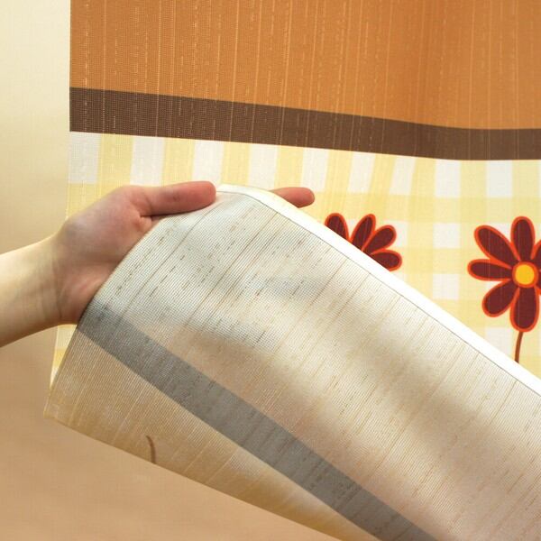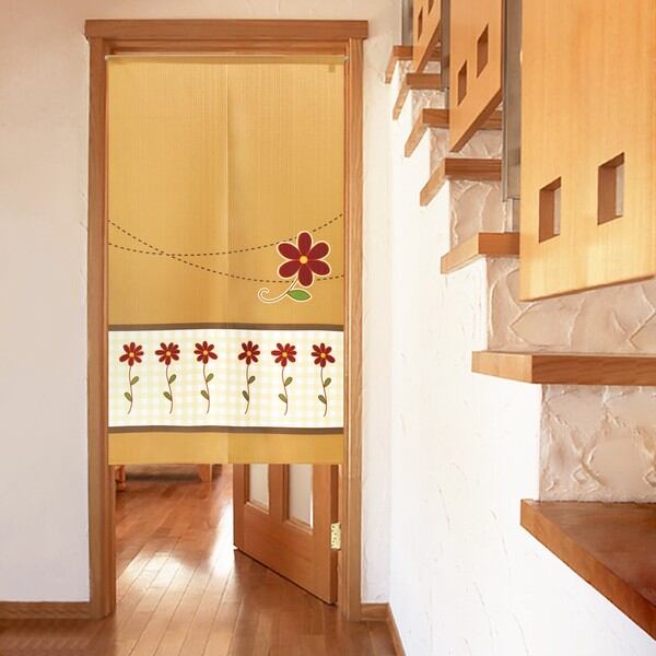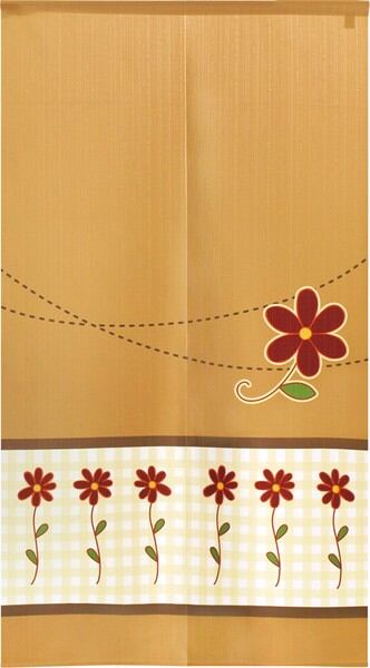 のれん 受注生産 目隠し 「チェックフラワー」85x150cm 日本製 洋風 洋柄 / 家具・インテリア ファブリック・敷物