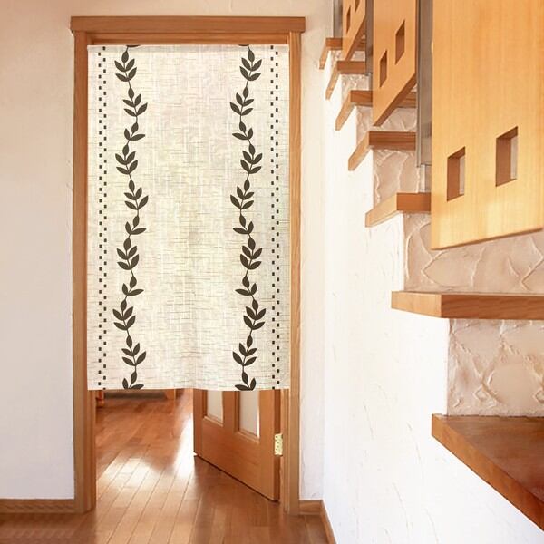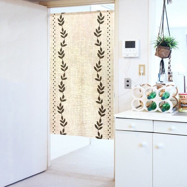 のれん 受注生産 目隠し 「リーフ_ウェーブ」85x150cm 日本製 洋風 洋柄 / 家具・インテリア ファブリック・敷物